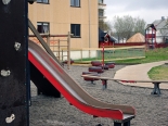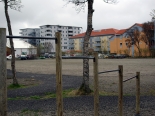 Fra toppen av parken er det god utsikt ut mot nordlandshallen, flyplassen og gaten jeg bodde i rett før vi flyttet tilbake til Skien. Etter å ha sett gamlehuset gikk turen videre til Østbyen barneskole der jeg gikk fra 1-3 klasse. Veggene vi sparket ball mot, "kongen på haugen"-haugen, buskene med alle gangene.. alt var der fortsatt.