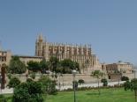 Turen kom så endelig til Catedral of Palma, turens høydepunkt. Bussen kjørte forbi tidligere på runden sin, men stoppet ikke da. Katedralen ligger på en liten høyde, inn-muret sett fra sjøen. Foran ligger et mellomstort ferskvann med en stor vannstråle sprutende opp. På vei opp til Katedralen er det alskens gateselgere og musikere som prøver å samle inn noen euro hver. Noen stod å blåste store såpebobler, noen tegnet, en spilte på gitar mens en annen hadde kledd seg ut som en gull-gladiator. I gatene på høyden var det koselige små spisesteder og trange gater: