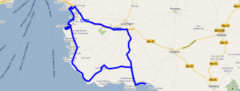En sykkel én dag kostet bare 5€, men måtte leveres tilbake innen 2000. Jeg hadde allerede lest at stranden Es Trenc er en av Mallorcas peneste strender og ligger sørøst for Playa de Palma. Avstanden er omtrentlig 35Km. Jeg tok med meg min GPS og fulgte veiene som går langs kysten. Store deler av strekket hadde plass og oppmerking av at sykler ofte syklet der, og siden jeg holdt meg unna hovedveien var det bare 70km/t på trafikken som suste forbi. Det blåste ganske kraftig, og det var mye oppover. Ikke veldig bratt, men kontinuerlig over tid.