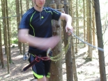 I helgen feiret vi farfar som blir 85 år nå i mai. Vi startet dagen med en god porsjon hagearbeid som bestod i å felle to trær, samt kutte ned på en del busker rundt om i hagen der farmor og farfar bor. Det handlet nok mest om å unngå at "trærne skal få vokse over hodet" på en. Det ble mye åpnere, og dermed lettere å stelle i hagen. Alt hageavfallet fraktet vi så tettpakket bort i en tilhenger med bur rundt som vi lånte dagen før. Helt utrolig hva den lille fiestaen er i stand til å dra etter seg! Farfar hadde en gammel motorsag som var noe vanskelig å få i gang, faktisk så vanskelig at naboen kom over gjerdet med sin egen som nesten ikke var brukt. Den var ikke direkte lett på foten den heller, men far fikk nå start på den, og satte driftig igang. Farfar, som på tross sin høye alder ikke så ut til å la seg stoppe av den grunn, var ivrig med når tunge grener skulle fraktes bort til hengeren. Faktisk så ivrig at vi pent måtte be han sitte ned slik at han skulle være opplagt til besøket senere om kvelden.