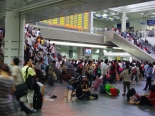 Billetter var selvsagt ikke å få tak i. Dagen før er rett og slett for sent. Vi måtte derfor tilbringe en ekstra dag i Guangzhou. Vi fikk tips om å sjekke inn på et V8 hostel like i nærheten av stasjonen. Et (dobbelt) rom kostet bare 128 yuan. Vi fikk i oss noe temmelig sterkt krydret mat på en lokal restaurant der ingen pratet et døyt engelsk. Softsleeper togbilletter hadde vi fått tak i til neste dag, samme tidspunkt.