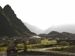 Da jeg startet å skrive på denne bloggen befant jeg meg på øygruppen Træna utenfor Mo i Rana, nærmere bestemt Husøya. Jeg bodde på Træna gjestegård, et lite overnattingssted som til tross for å være ganske utslitt sett utenfra faktisk faktisk er ganske trivelig innvendig og med store rom. Husøy er en liten øy, men likevel klarte vi å gå forbi gjestegården på første forsøk. Avstanden fra bryggen er fergen kom inn er bare en 5 minutters gåtur, men vi ante ikke hva vi skulle se etter. Det er felles dusj og toalett men med god standard, samt at mat-serveringen er helt fantastisk! Det et som regel bare en rett på menyen, men det var bare å komme med ønsker. Første kvelden var det nydelig fisk, og dagen etter var det en fantastisk biff! Eieren av gjestegården var kjent for den. Selv konduktøren på båten over til Træna ble "litt misunnelig" da han hørte det var biff på menyen :) De første bildene under er fra Husøy, mens de 5 resterende er fra øya Sanna: