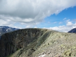 Neste morgen tok vi fergen vestover til Gjendebu, en turisthytte i motsatt ende av Gjende. Turen startet 0810 og vi var fremme ca 0830. (120,-) Vi fulgte så stien sørover mot Svartdalen. En noe dyster dal. Det var meget bratt stigning inntil vi var kommet opp og inn i dalen. Derifra gikk det innover forbi noen små vann og vi hoppet fra sten til sten størsteparten av tiden. Været denne lørdagen var betydelig mer grått, og det blåste mye sørfra. Midt inne i dalen fant vi et lite værskjul under en stor sten. Dalen ligger på ca 1450 moh. Halvveis igjennom dalen begynte det å regne ganske kraftig og vi fikk prøvd ut regntøyet. Omsider gikk det nedover igjen og vi kunne se vannet Bygdin. Dette vannet er mye større enn Bygdin og ligger dessuten en ca 75 meter høyere. Solen tittet stadig fram etterhvert som vi nærmet oss Torfinnsbu der vi skulle overnatte. Innen vi var nede hadde himmelen klarnet så mye at vi kunne ligge noen timer å sole oss. Vi kom tross alt veldig tidlig frem til hytten etter å ha gått i 4.5 time.
