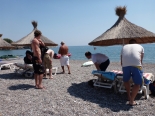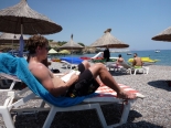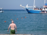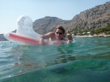 I dag fredag har vi vært noen kilometer nord for Lindos på en stenstrand. Vi badet litt, men lå for det meste under parasollene våre grunnet den ekstreme varmen. Noen av oss ble så røde at sengen ble neste. Parasollen beskytter nemlig ikke mot refleksjoner fra havet. Vi får se om vi får opp de de gjelder når det nærmer seg middagstid etter at solen har gått ned.