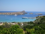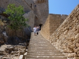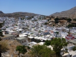 17 jul. 2011Lørdag dro tre av oss inn til Lindos mens de resterende tok enda en dag med avslapping. Lindos er en vakker by med hvite hus i en stor dal, og som omgir en stor borg. Vi parkerte langs veien og gikk først ned og igjennom gate med gate med suvernirbutikker. Forbi alle butikkene gikk det så oppover til toppen. Det var nydelig utsikt, både tilbake mot byen og ned mot strendene og havet. Borgen i Lindos, "byen i høyden" (akropolis) hadde god utsikt ut mot havet og byen. Vi vandret rundt i varmen, tok noen statuebilder, så at Grekerne drev å gjennoppbygget murene og gikk så ned igjen. Vi spiste på toppen av en restaurant inne i byen, jeg kjøpte noen suvernier og så gikk vi ned til stranden. På kvelden grillet vi igjen, nå med alt for mye kjøtt. Vi må ha glemt at vi ogå skulle spise tilbehør som igjen bestod av bakte poteter og grillede grønnsaker.
