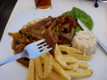 På vei tilbake plukket vi opp Eirik og Jørgen som hadde tatt turen til Lindos, slik vi gjorde dagen før. Om kvelden dro vi tilbake til det spisestedet vi var på første kvelden der vi nå hadde reservert bord. Dagen 2 dager før hadde vi prøvd, men da var det fult. Det ble ganske fult i dag også, og servitørene var tydelig mer stresset i dag. Dessuten var det en plagsom musiker som spilte alt for høyt på saksofon til kjente popplåter. Vi droppet derfor deserten og spiste heller is og pannekaker inne i "sentrum".