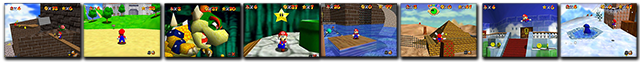Super Mario 64: Super Mario endelig i 3D! Artig å tenke tilbake på hvor mye moro vi hadde det da vi gikk gjennom dette spillet. Det er 120 stjerner og når du har alle åpnes en kanon ute i hagen som lar seg skyte Mario opp på taket er Yoshi gir deg masse liv.