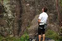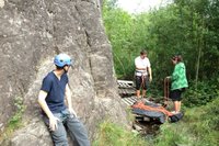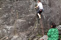 Stian og jeg ble med Helle og Alexander på frisbeegolf etter en økt med volleyball på mandag. På Onsdag dro vi igjen sammen til Åfoss for å klatre. Nå var også far med da han er en ivrig klatrer. Far og Alexander ledet opp topptau, og vi andre som ikke hadde så mye erfaring klatret bare på topptauene.