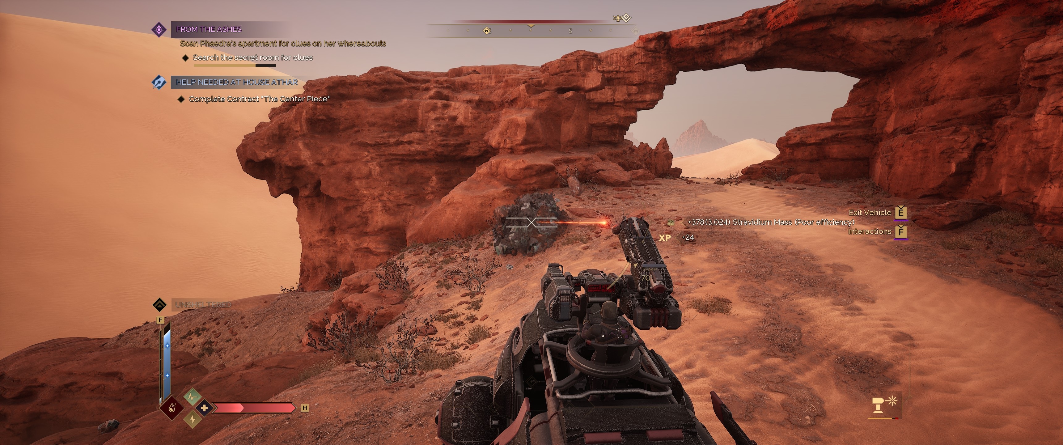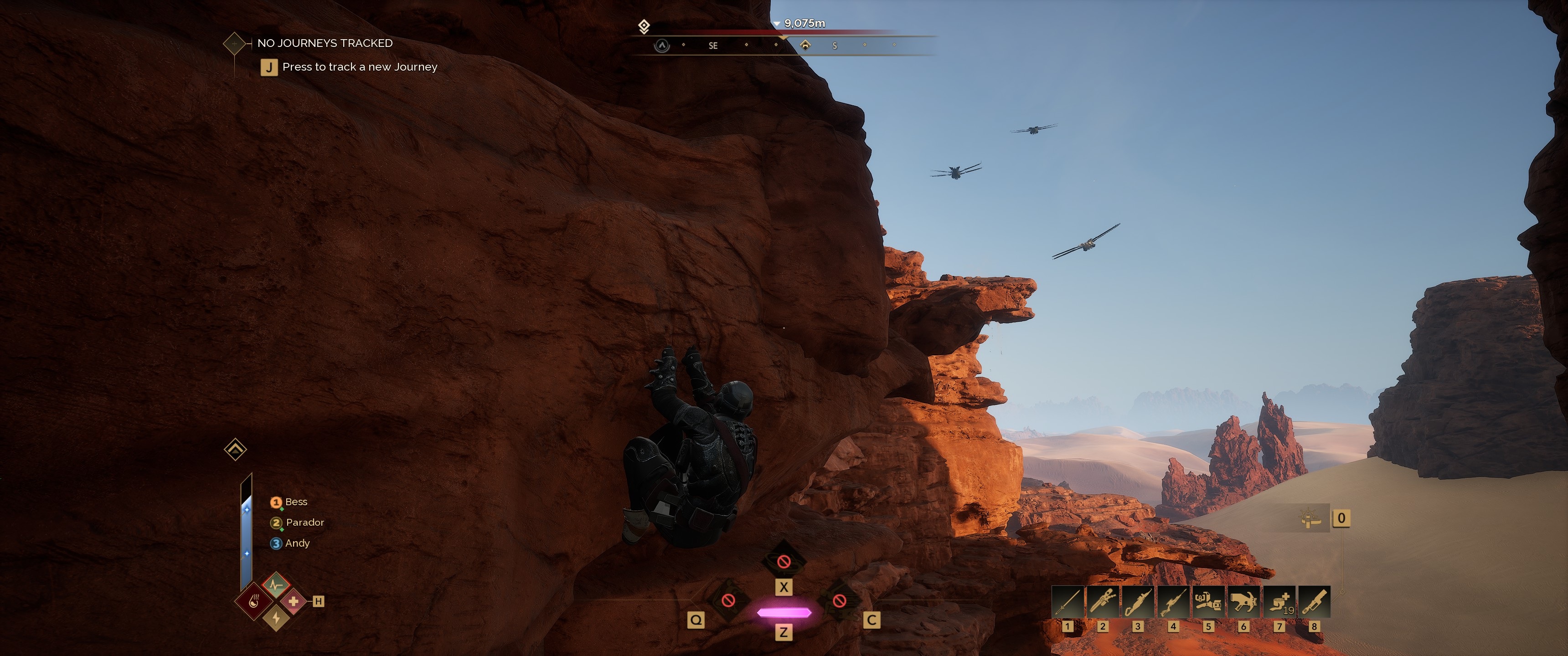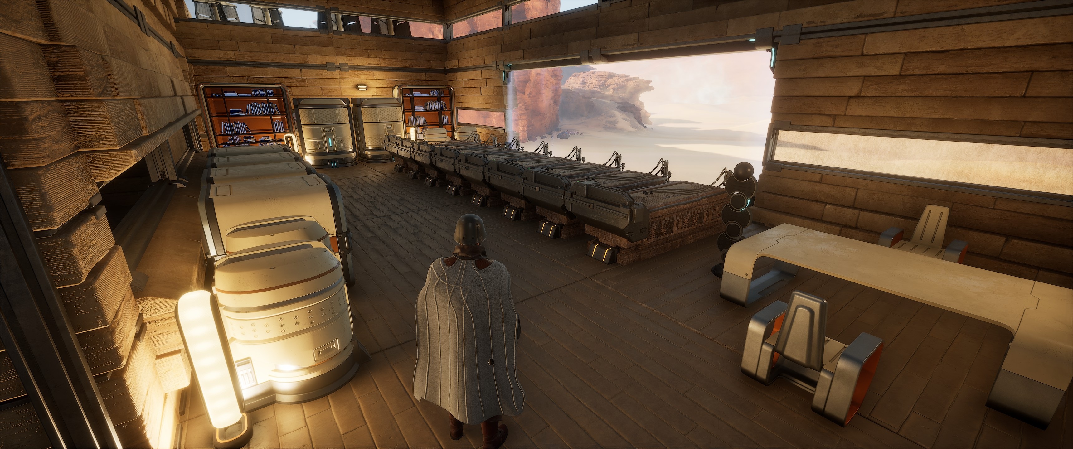 Dune Awakening følger et alternativt univers hvor Paul Atreides ikke ble født. Historien er grei nok, om noe repetitive oppdrag med i overkant unødvendig behov for transport frem og tilbake på kartet. Starten av spillet handler mest om å låse opp teknologi og ferdigheter, samt jobbe seg opp fra sandmotorsykkel, "buggy" (4-hjuling), scout og assault ornithopter. Et ornithopter er et helikopter med flere par faste vinger som flakser som en fugl, da i motsetning til helikoptre som har roterende vinger. Ganske artig måte å fly på, om naturligvis svært upraktisk i den virkelige verden.