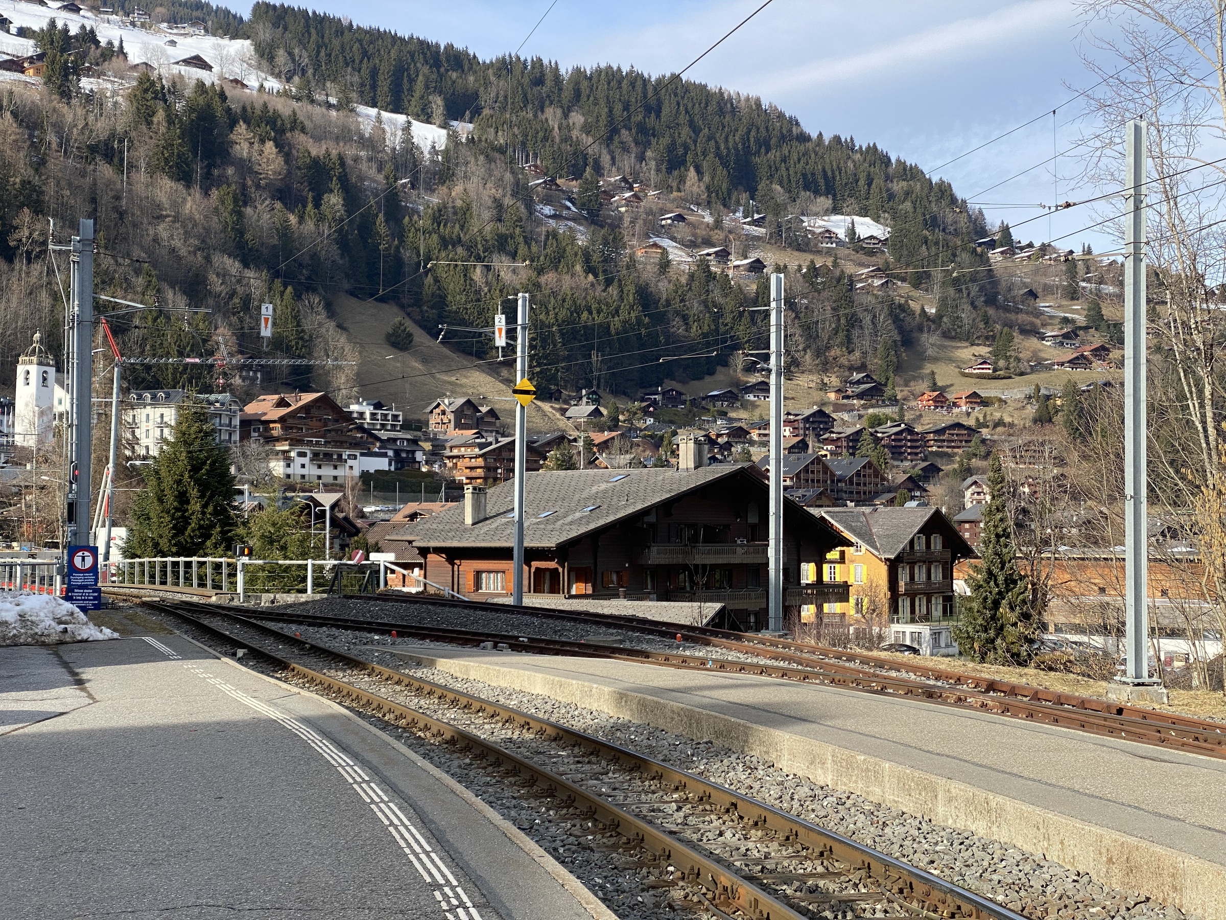 Ved den lokale togstasjonen, siste stoppet før gondol opp til toppen